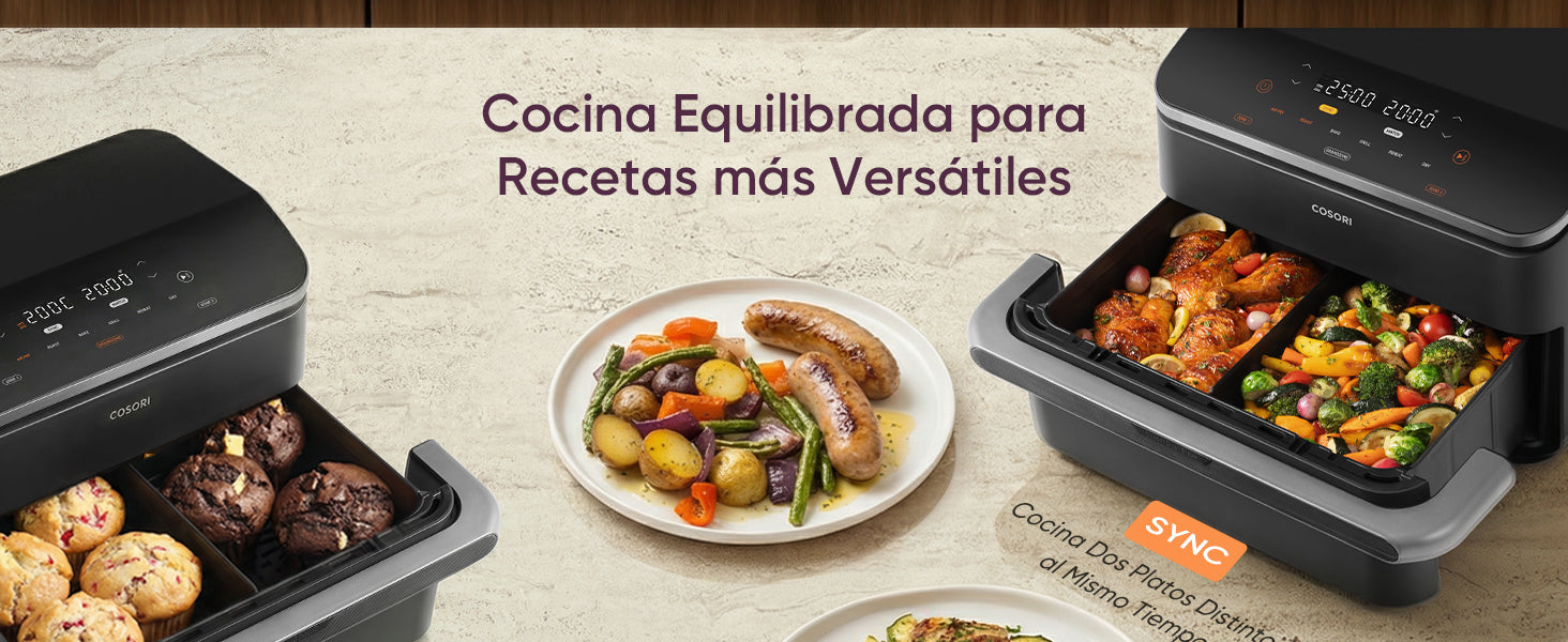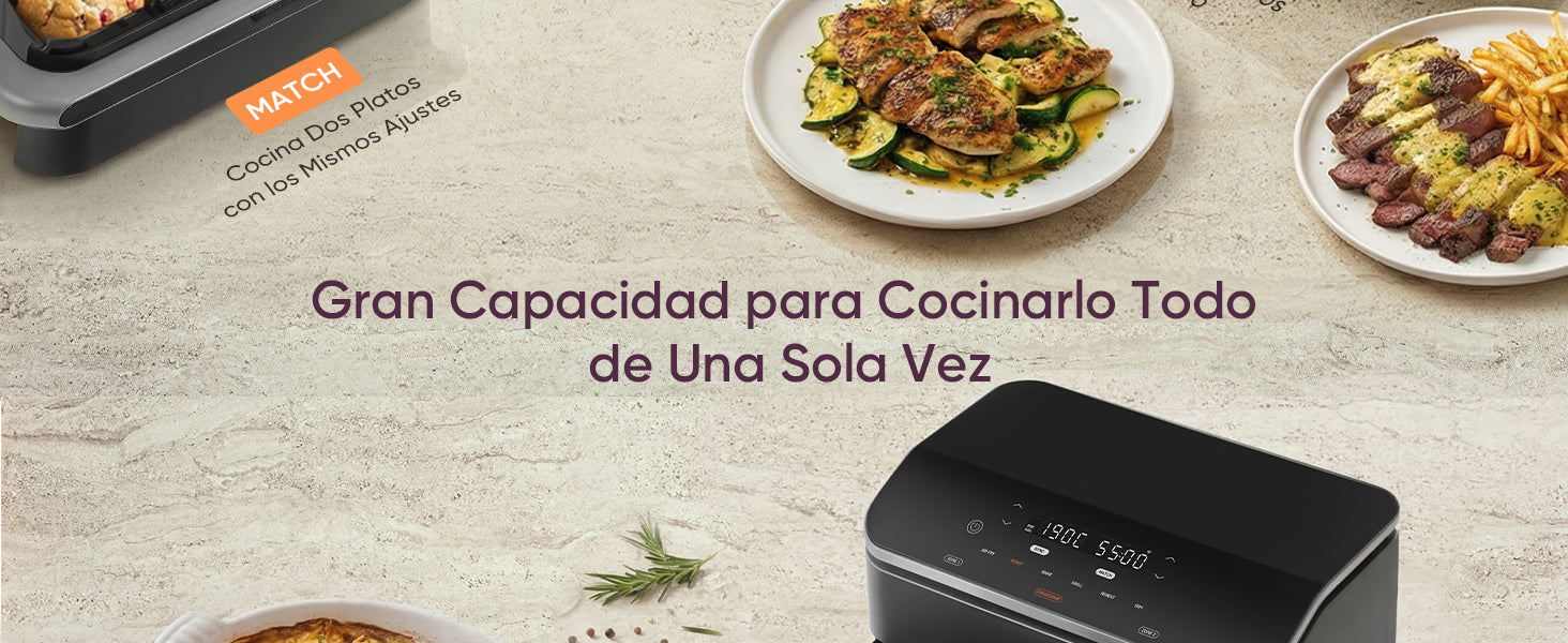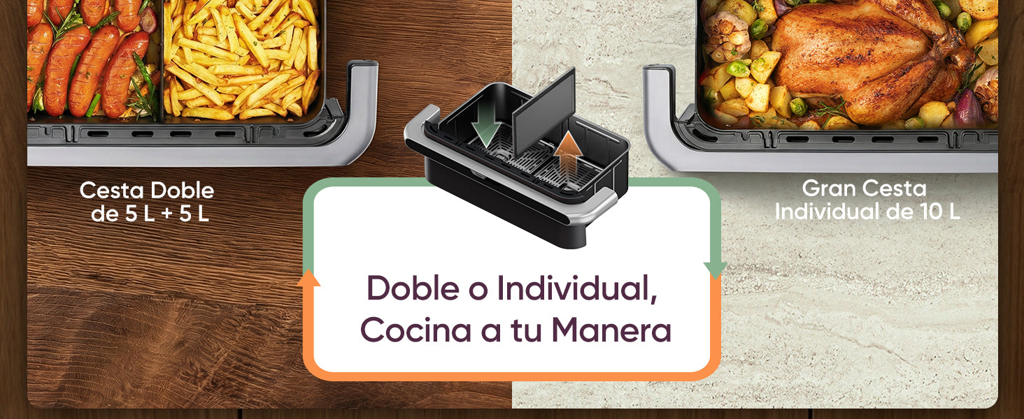 - 【𝐃𝐢𝐯𝐢𝐬𝐨𝐫 𝐄𝐱𝐭𝐫𝐚í𝐛𝐥𝐞 𝐪𝐮𝐞 𝐬𝐞 𝐀𝐝𝐚𝐩𝐭𝐚 𝐚 𝐭𝐮𝐬 𝐍𝐞𝐜𝐞𝐬𝐢𝐝𝐚𝐝𝐞𝐬】Usa la cesta completa 10 L o separa en 5 L + 5 L. Con SYNC y MATCH puedes cocinar dos platos a la vez y hacer que terminen a la vez, ahorrando tiempo en el día a día.