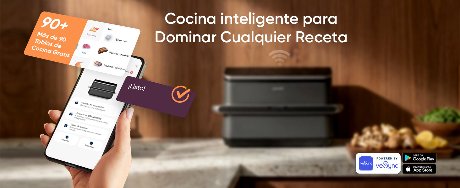 - 【𝐂𝐨𝐧𝐞𝐜𝐭𝐢𝐯𝐢𝐝𝐚𝐝 𝐖𝐢𝐅𝐢 𝐈𝐧𝐭𝐞𝐥𝐢𝐠𝐞𝐧𝐭𝐞: 𝐂𝐨𝐜𝐢𝐧𝐚 𝐜𝐨𝐧 𝐌á𝐬 𝐋𝐢𝐛𝐞𝐫𝐭𝐚𝐝】Controla desde el móvil con VeSync APP: recetas guiadas y tablas de cocción para cocinar con más seguridad, incluso si no eres experto.