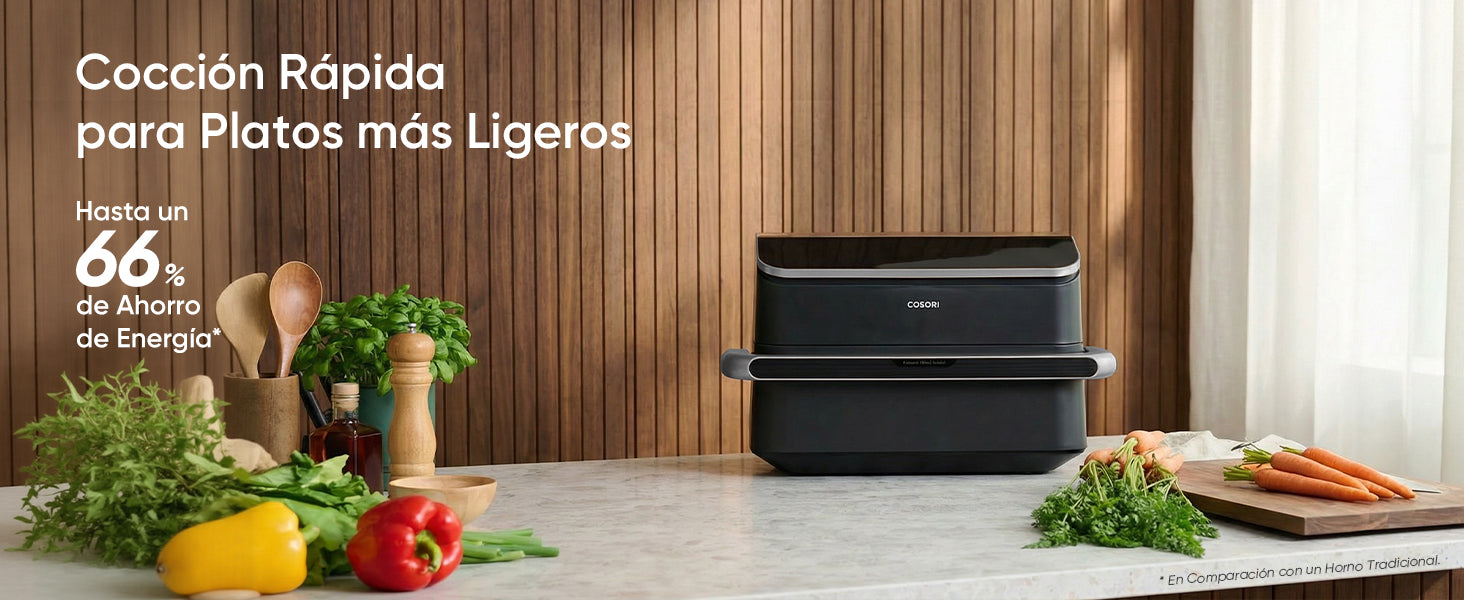 - 【𝟓𝟓 % 𝐌á𝐬 𝐑á𝐩𝐢𝐝𝐨 𝐲 𝟔𝟔 % 𝐝𝐞 𝐀𝐡𝐨𝐫𝐫𝐨 𝐝𝐞 𝐄𝐧𝐞𝐫𝐠í𝐚】Potencia 2800 W para cocinar hasta 55% más rápido que el horno y con hasta 66% más eficiencia energética* (según condiciones de prueba; los resultados pueden variar).
