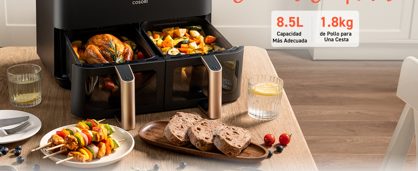 Cosori Freidora de Aire Grande con Doble Cesta 8,5L Air Fryer